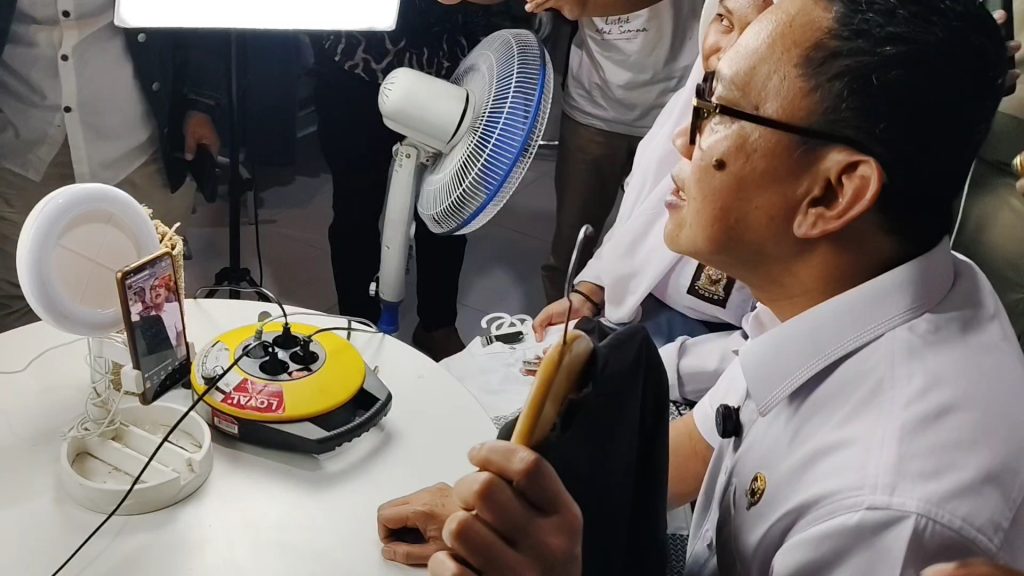 Menteri P2MI, Abdul Kadir Karding ikut merasakan pengalaman berjualan online melalui live streaming (Foto : Darfan)